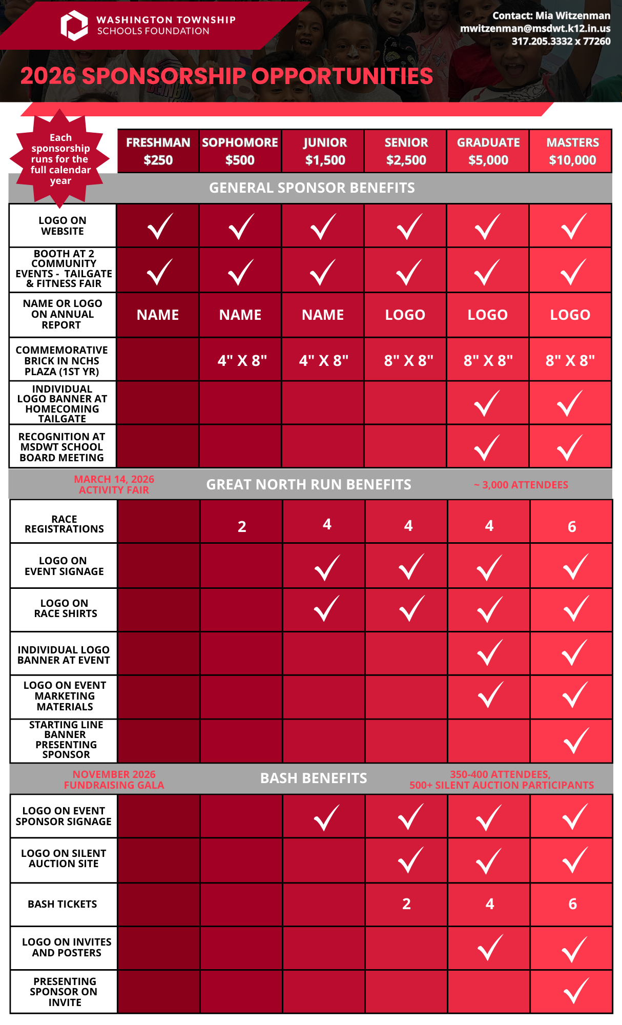 We are incredibly thankful for the organizations that sponsor us and for everything they make possible for the students and teachers of Washington Township.